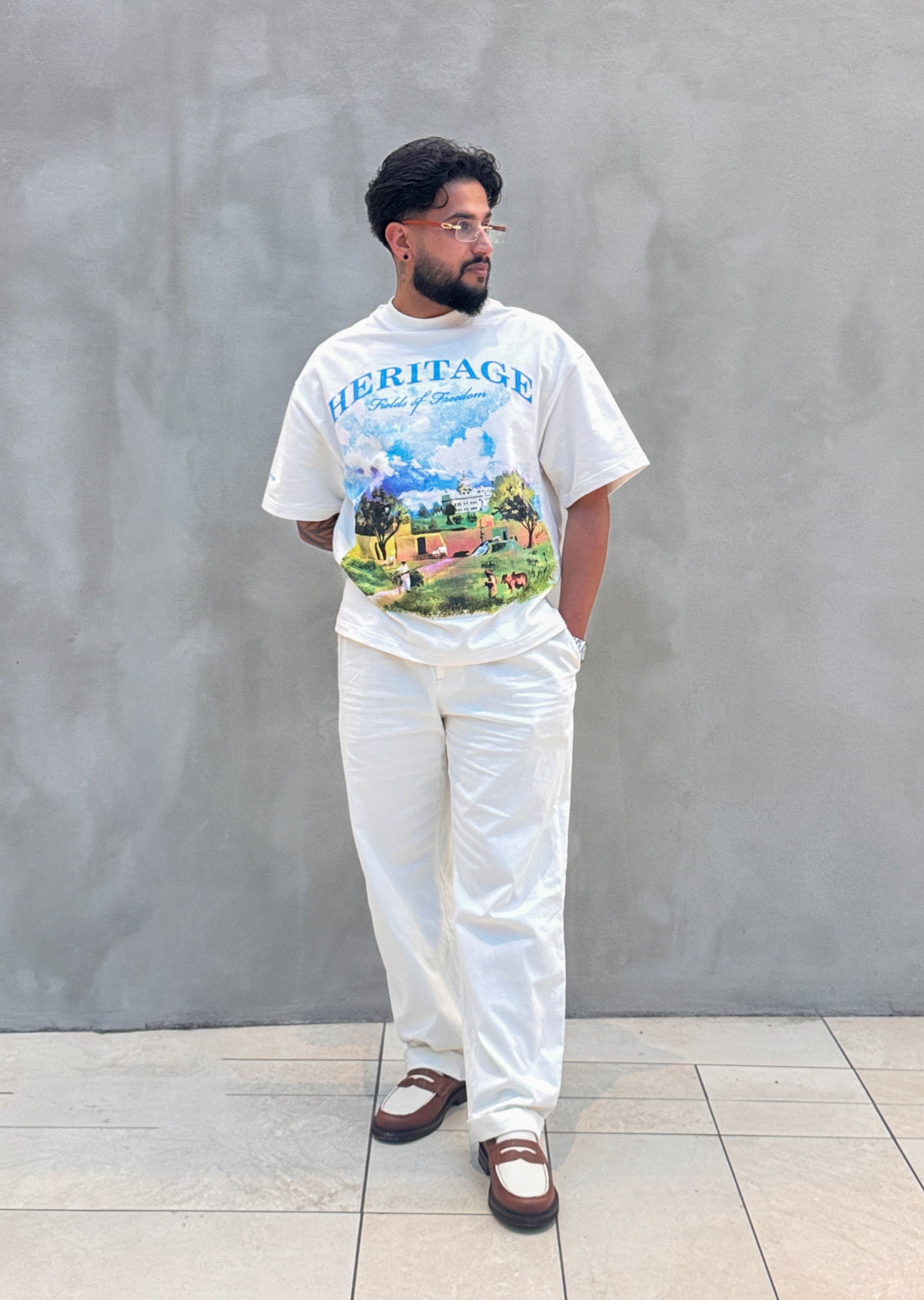 This 240 GSM off-white premium cotton t-shirt by Brown Decade is built with HeritageSeal™ stitching, designed to age beautifully over time. The artwork is a hand-painted piece I created back in high school, inspired by carefree summer holidays spent in the village.